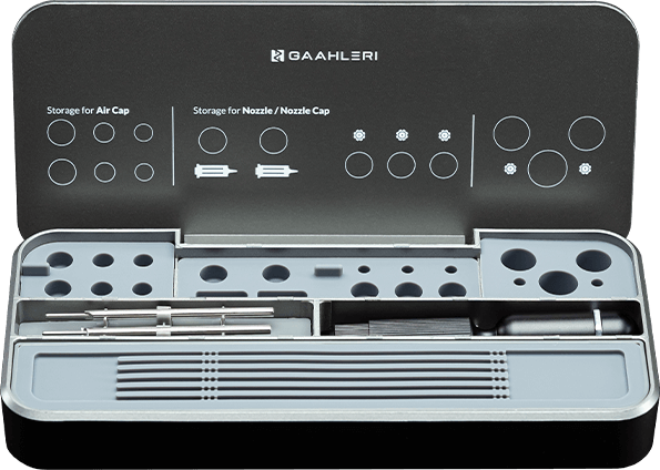 Collaboration airbrush with renowned YouTuber Barbatos Rex. Featuring a unique, stunning design and enhanced performance, this airbrush combines precision, control, and style for ultimate creativity. Comes with exclusive Barbatos Rex stickers and limited edition female quick disconnect adapter!