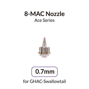 The 0.7mm Nozzle for GHAC-Swallowtail is designed for optimal control and smooth, even spray patterns. Made from durable materials for long-lasting use, our 8 Micro-Air-Channel ( MAC ) System nozzle ensures consistent atomization, making it perfect for detailed work and large surface coverage alike. Ideal for professionals and hobbyists, our nozzle delivers superior performance for fine detailing, model painting, automotive work, and more. Achieve flawless finishes with our premium airbrush nozzle.
