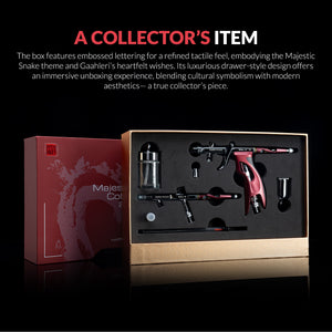 Continuing Gaahleri’s tradition, the Majestic Snake Collection is a celebration of precision, power, and sophistication. Designed for both collectors and enthusiasts, this exclusive set comes with a beautifully crafted gift bag and packaging, never seen before Mobius TG 0.5mm airbrush and the crowd favorite Mobius SP 0.3 & 0.5mm airbrush, making it a perfect choice for gifting or personal collection.