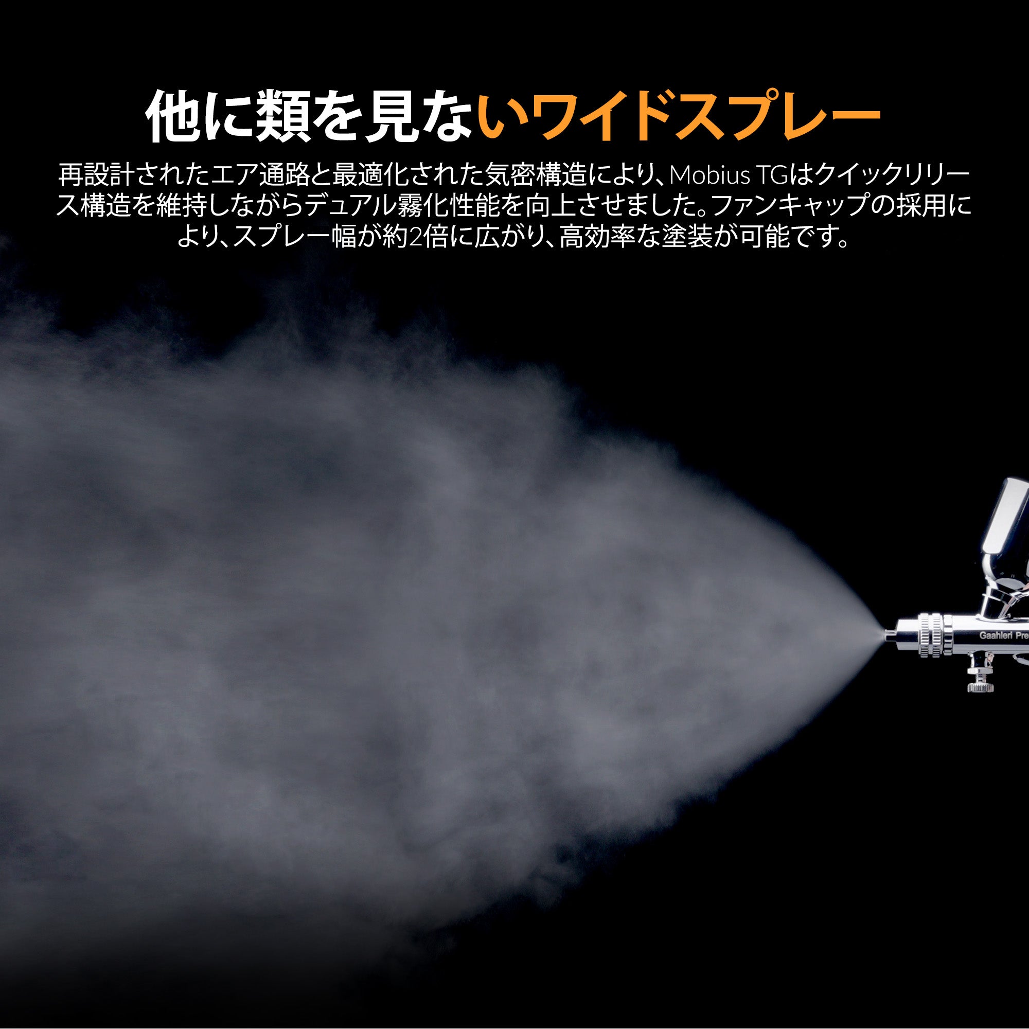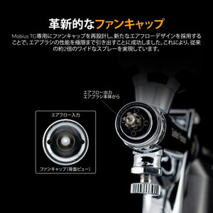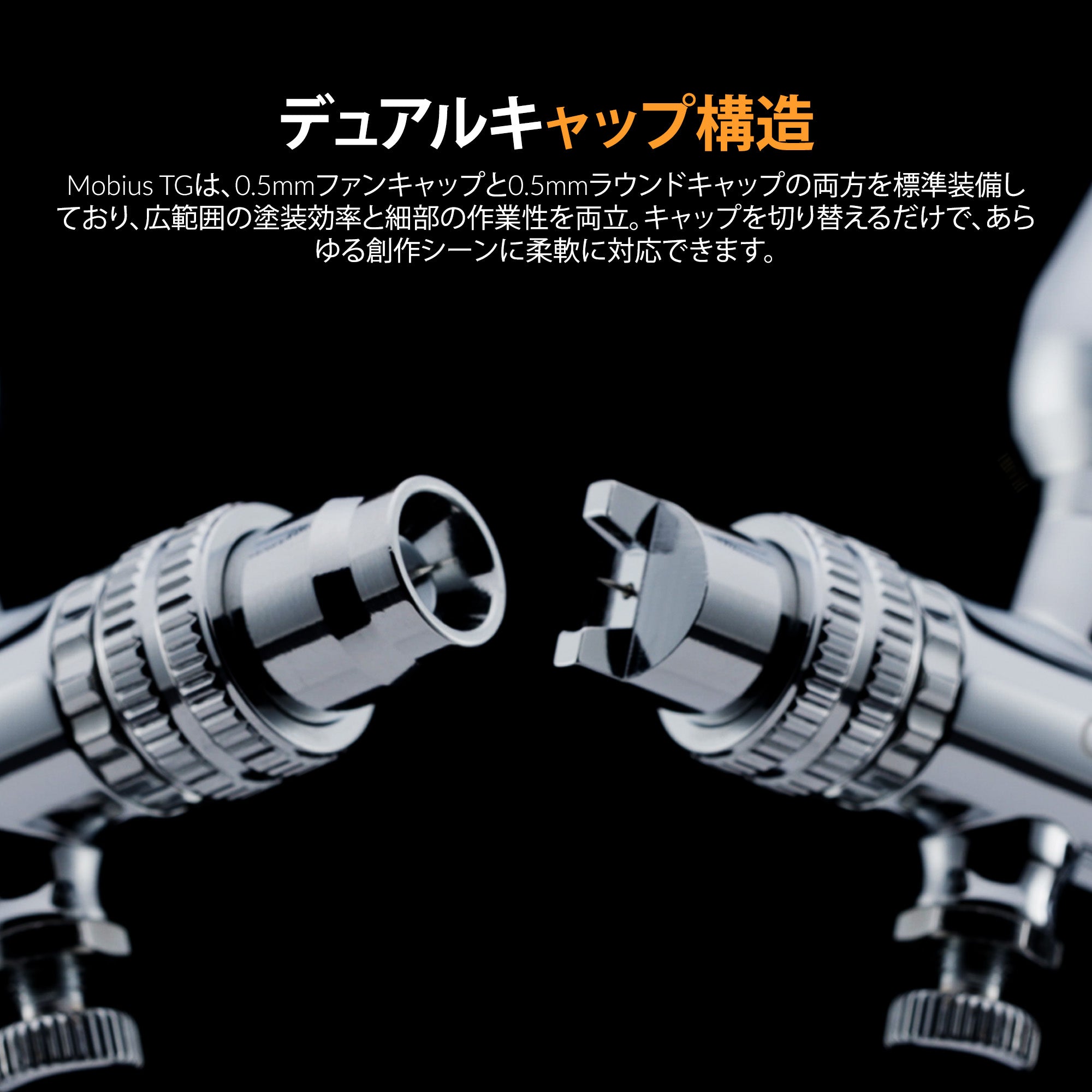 The Mobius TG comes with both 0.5mm fan cap and 0.5mm round cap. Providing unmatched efficiency for large-area coverage while maintaining the ability for detailed work, making it versatile for any creative scenario with just a switch.