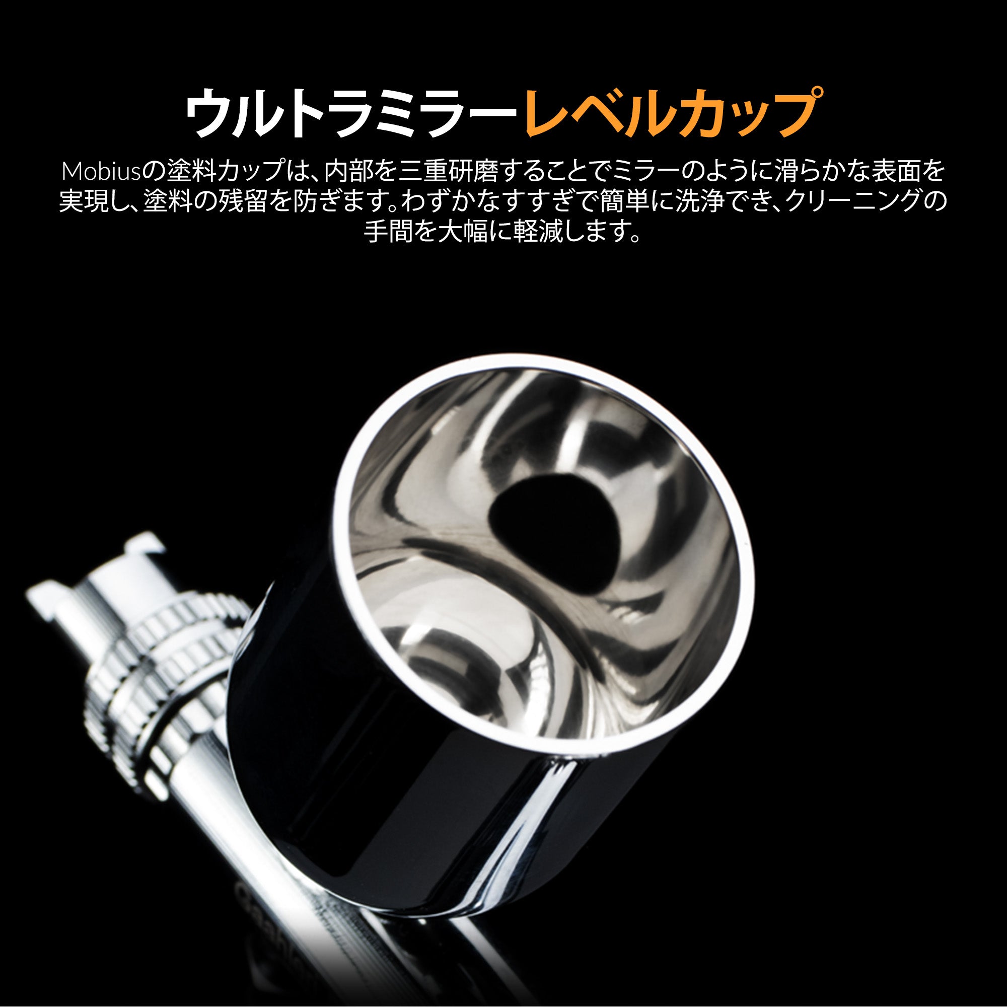 The Mobius paint cup features a triple-polished interior, creating a mirror-smooth surface that prevents paint residue. It rinses clean with minimal effort, making brush cleaning a hassle-free experience.