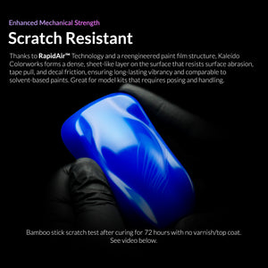 Kaleido Colorworks RapidAir™ Series is a premium water-based acrylic paint designed for smooth, high-performance spraying. Made with an eco-friendly, non-toxic, and solvent-free formula, it’s factory-pre-thinned for direct use or easy dilution. Powered by RapidAir™ Technology, it addresses common water-based paint issues, such as beading, uneven coverage, and sagging, by applying in a smooth, sheet-like layer. This advanced formula delivers strong adhesion, scratch resistance, durability, and a glossy finish similar to solvent-based paints. No primer needed—works on ABS, PE, PC, resin, glass, fabric, metal, and more. Perfect for model painting, crafts, DIY, and professional use.