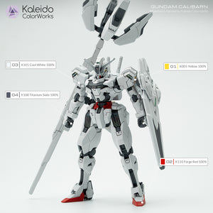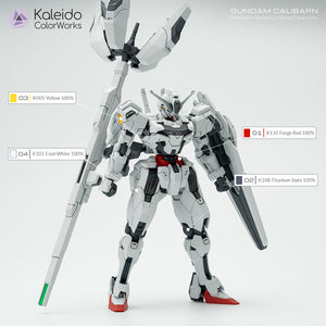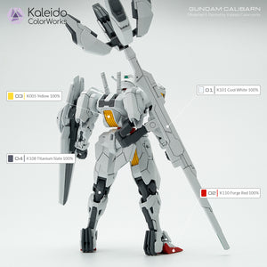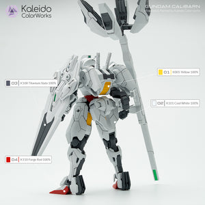 This is a recreation/repaint version of the Gundam Calibarn model kit with colors from Kaleido Colorworks.