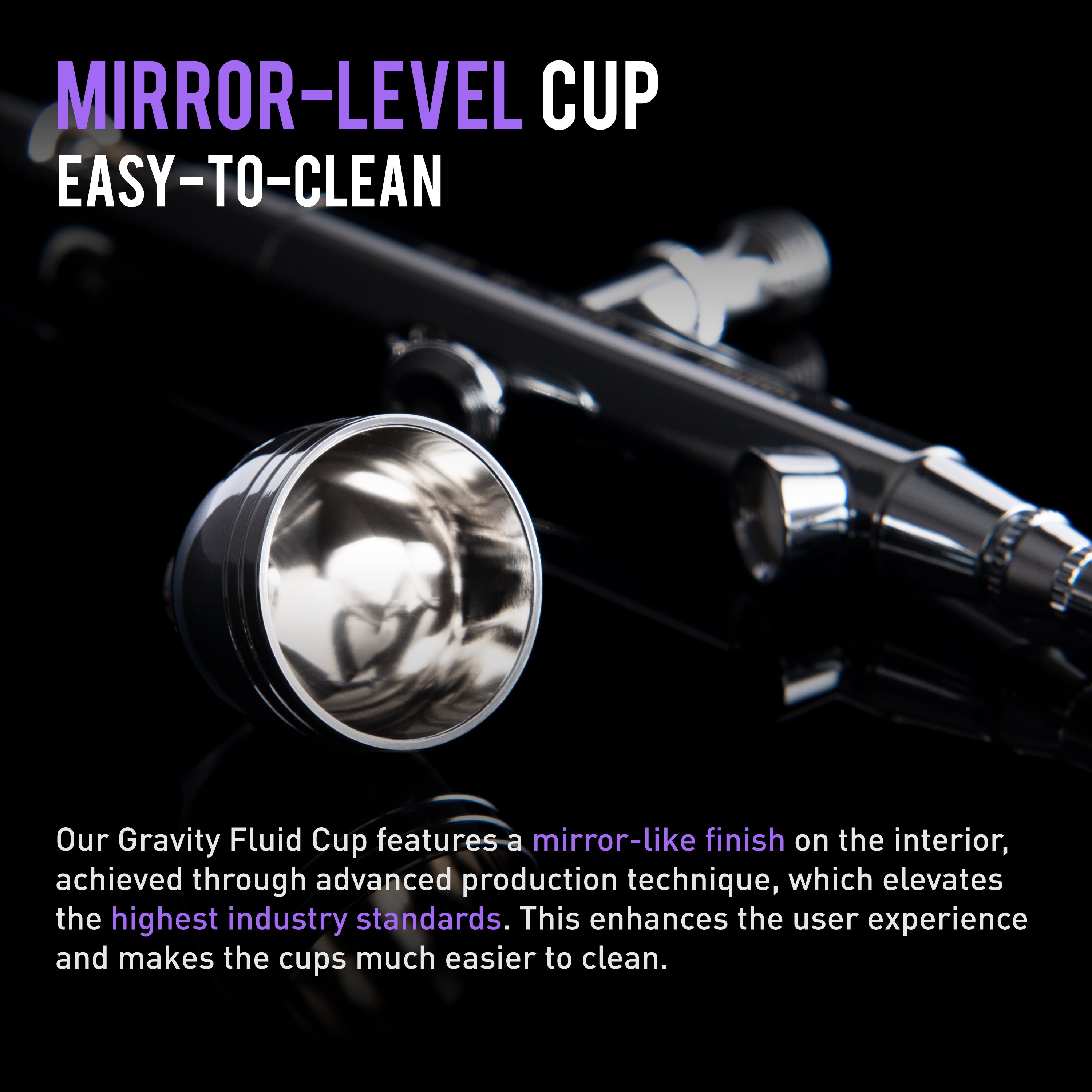 Mirror-level Fluid Cup : Easier cleaning & less paint buid-up