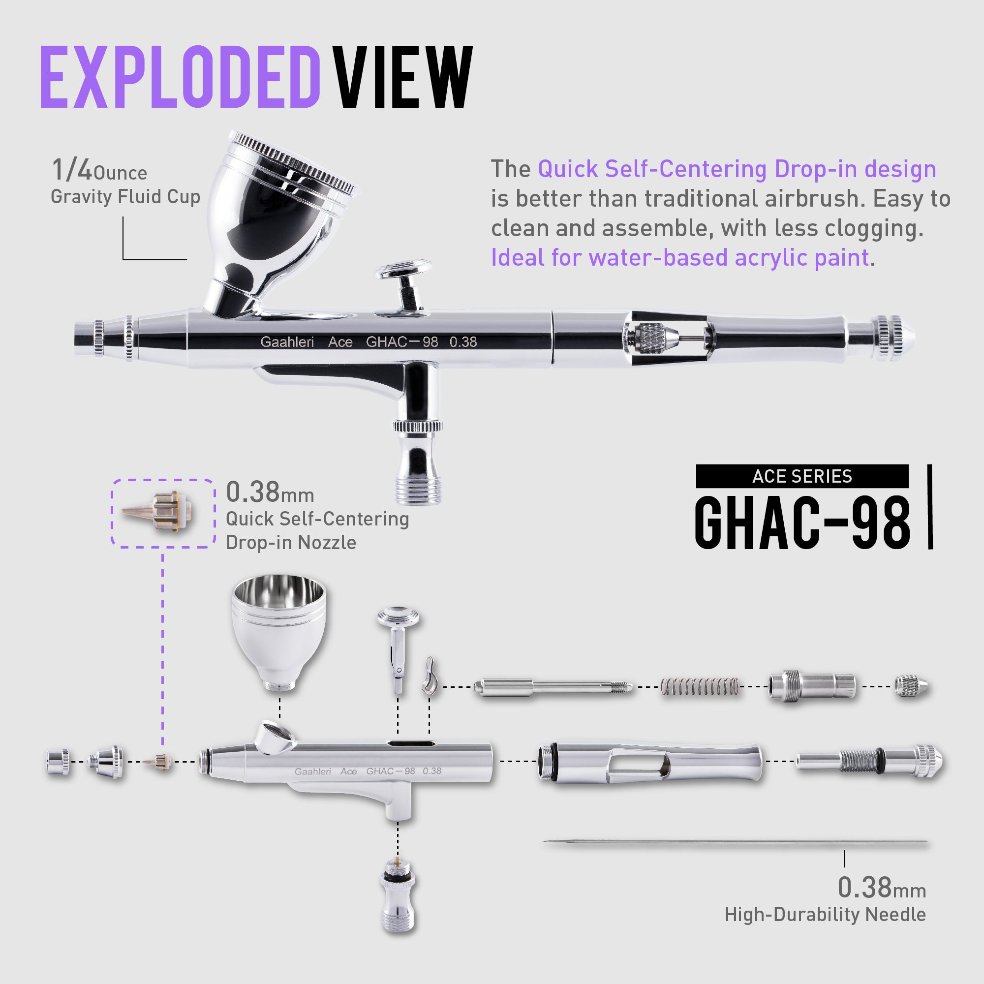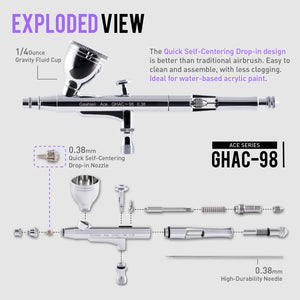 All in one & one for all : The Airbrush GHAC-98 represents exceptional atomization effect and unparalleled fine line ability. This airbrush gun is designed to meet and exceed all your expectations with its 0.38mm Needle Nozzle Set.