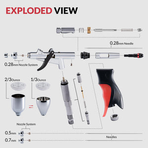 ペイントカップは鏡面仕上げに磨かれており、毎日の色交換作業に役立ちます。蓄積を防ぎ、時間を節約します。各エアブラシには、1/3 オンスと 2/3 オンスのペイントカップが付属しています。