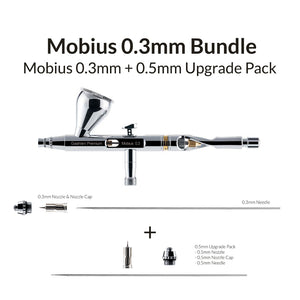 This is a special limited time Mobius bundle that features the Premium Series GHPM-Mobius 0.3mm airbrush with the 0.5mm Upgrade Pack that includes the 0.3mm nozzle, nozzle cap and needle.