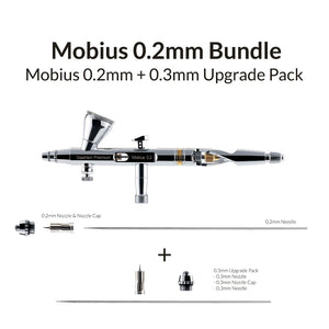 This is a special limited time Mobius bundle that features the Premium Series GHPM-Mobius 0.2mm airbrush with the 0.3mm Upgrade Pack that includes the 0.3mm nozzle, nozzle cap and needle.