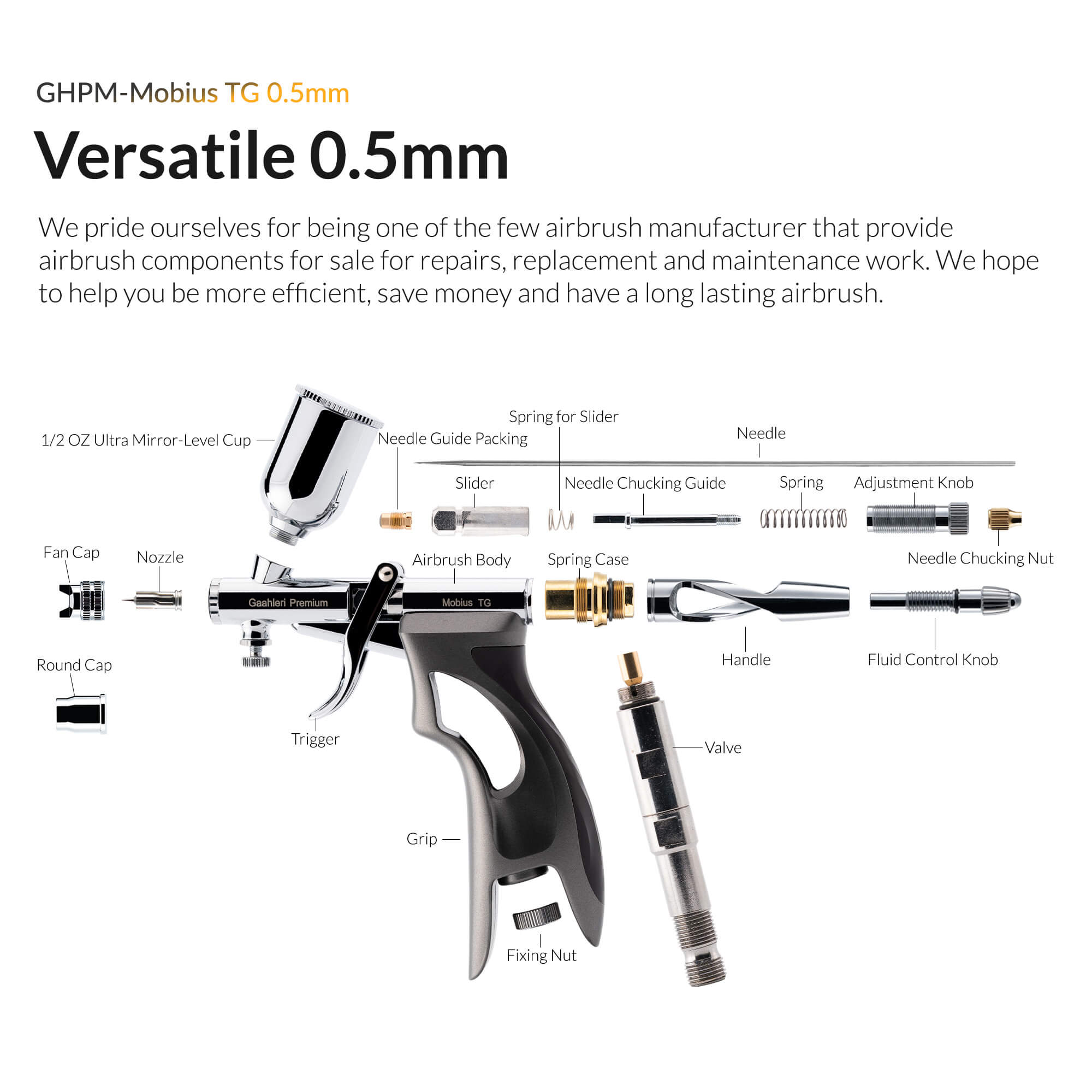 Premium Series GHPM-Mobius TG 0.5mm Airbrush