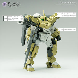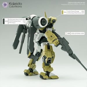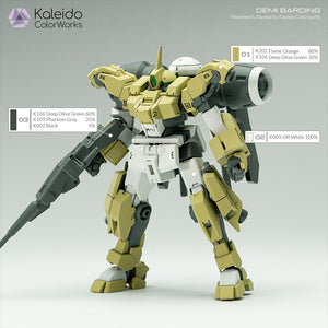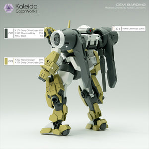 This is a recreation/repaint version of the DEMI BARDING Gundam model kit from Bandai with colors from Kaleido Colorworks - Mecha Series.
