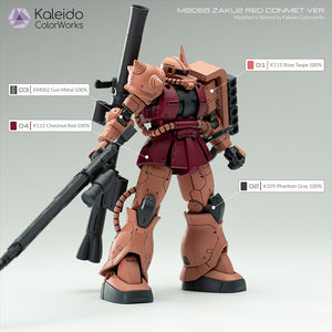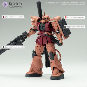 This is a recreation/repaint version of the MS06S ZAKU-II RED CONMET VER Gundam model kit from Bandai with colors from Kaleido Colorworks - Mecha Series.