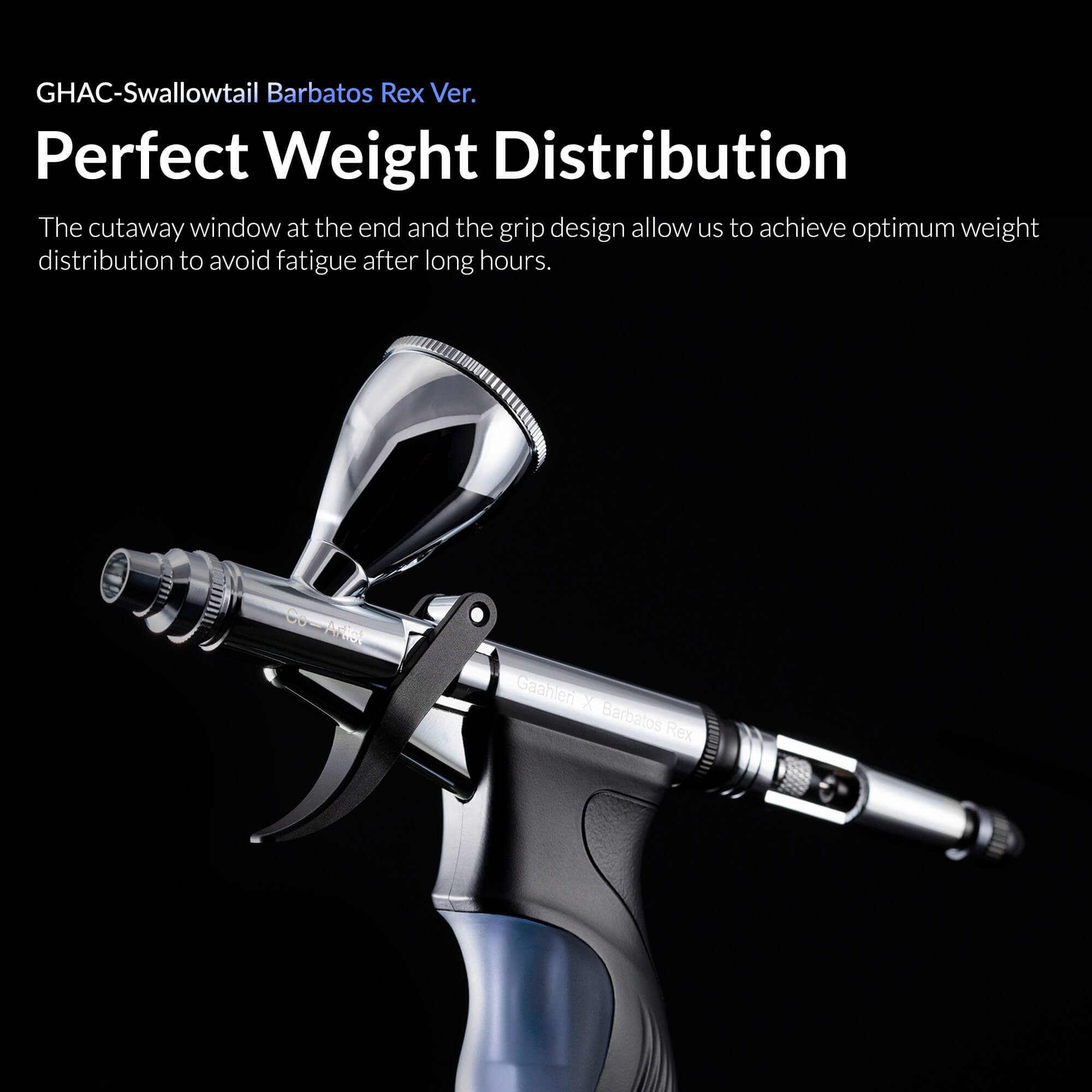 Optimized Weight Distribution: The cutaway window at the back is designed to optimize weight distribution, reducing hand fatigue even after extended use, allowing for longer, more comfortable airbrushing hours.