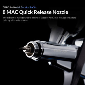 The Gaahleri GHAC-Swallowtail & Rex Airbrush is a collaboration between Gaahleri and the renowned influencer Barbatos Rex, featuring his signature color on the grip and exclusive, custom-designed packaging. Built for precision and versatility, this airbrush caters to a wide range of artistic needs, from detailed fine arts to broader applications.
